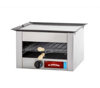 Carlitero Simple Sol Real SKU 061 - Gabinete de acero inoxidable esmerilado. - Plancha bifera. - Incluye 1 pinza carlitera de 32 x 38 cm. - Mechero 4 velas - 1 robinete. - Peso Neto: 10,2 kg. - Kilocalorías/h: 4.400 Alto 31 , ancho 48, prof 46