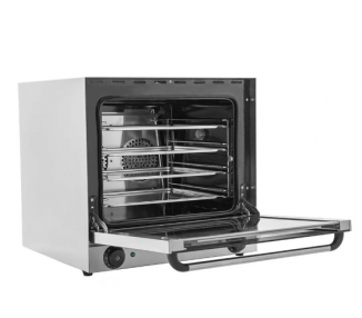 HORNO CONVECTOR ELÉCTRICO SKU MC-530 Potencia máxima: 2670 W Turbina de convección de aire para cocción pareja Exterior construido de acero inoxidable Interior enlozado y acero Luz interna en cámara de cocción Timer hasta 120 minutos Control de temperatura hasta 300° Incluye 3 estantes de 325 x 265 mm Peso Neto: 27 kg. Medidas: Frente: 56 cm | Profundidad: 46 cm | Altura: 46...