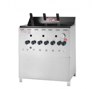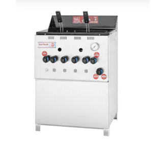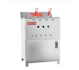 Freidora 42 Lts / Triple inyección SKU 057 - Gabinete 100% acero inoxidable esmerilado. - Puerta inferior desmontable. - Tacho enlozado con tapa de acero inoxidable. - 18 inyectores + piloto con comandos individuales. - Incluye válvula de seguridad. - 3 Canastos - Medidas: 24x18x12 cm. - Desagote con llave esférica de bronce. - Peso Neto: 32,4 Kg. - Kilocalorías/h: 26.200