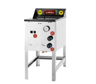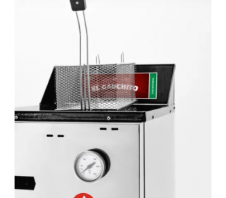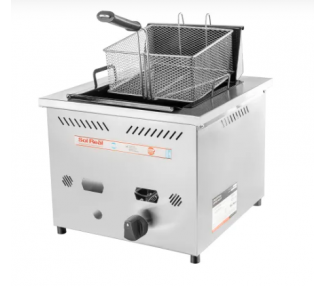 Freidora / Panchera de mesa SKU 053 - Gabinete 100% de acero inoxidable. - Tacho enlozado con tapa de acero. - 1 canasto de acero. Medidas 24x24x12cm. - Sistema de tres inyectores verticales directos, 1 comando + piloto. - 1 robinete. - Incluye valvula de seguridad. - Capacidad cúbica: 7 litros. - Kilocalorías/h: 4.800
