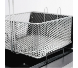 Freidora - agua & aceite - 10 Lts. SKU 443 - Cuerpo de acero inoxidable brillante. - Triple inyección compacta. - Tacho enlozado. - Tapa de acero inoxidable. - Incluye 1 canasto de 24 x 18 x 12cm. - Sistema de 6 inyectores enlozados para mayor durabilidad + piloto. - Incluye válvula de seguridad. - Desagote con llave esférica de bronce. - Kilocalorías/h: 9.400
