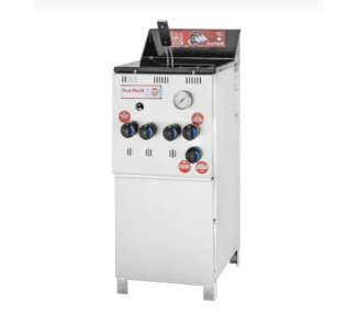 Freidora - agua & aceite - 18 Lts. SKU 444 - Cuerpo y tapa de acero inoxidable brillante - Sistema de 9 inyectores enlozados de mayor durabilidad + piloto. - Triple Inyección compacta. - Tacho enlozado - Válvula de seguridad. - 1 Canasto - Medidas: 24 x 24 x 12 cm - Desagote con llave esférica de bronce. - Peso Neto: 21 Kg. - Kilocalorías/h: 13.600