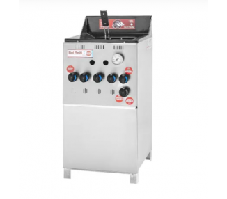 Freidora 18 Lts / Triple inyección SKU 044 - Gabinete 100% de acero inoxidable esmerilado. - Puerta inferior desmontable. - Tacho enlozado con tapa de acero inoxidable. - 9 inyectores + piloto con comandos individuales. - Incluye válvula de seguridad. - 1 Canasto - Medidas: 24x24x12 cm - Desagote con llave esférica de bronce. - Peso Neto: 21 Kg. - Kilocalorías/h: 13.600