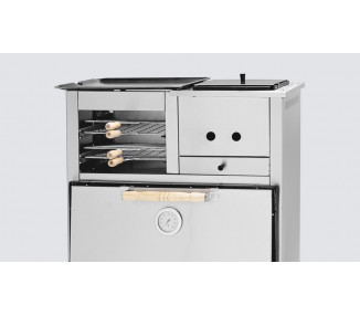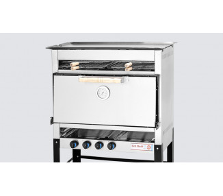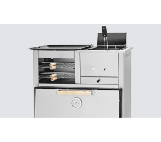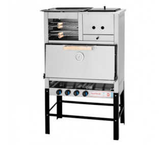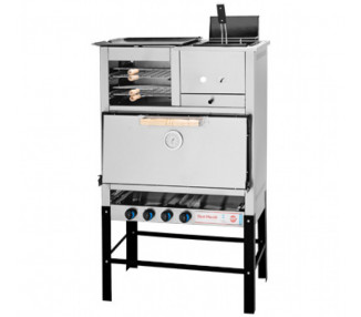 Horno 8 Pizzas c/ Plancha y Freidora Carlitero triple (incluye 2 pinzas), gratinador y plancha. Incluye un canasto freidor de acero inox. de 24 x 24 x 12 cm. Puerta desmontable con manija de madera, bisagras irrompibles y pirómetro analógico. Gabinete 100% acero inoxidable esmerilado. Cámara de cocción enlozada con piso de tejuelas refractarias. Incluye 3 rejillas extraíbles de 70 x 37 cm, y...