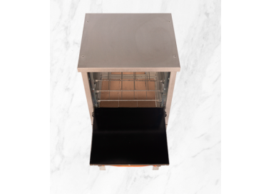 Cámara de cocción enlozada con piso de tejuelas refractarias.