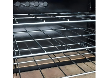 Cámara de cocción enlozada con piso de tejuelas refractarias.