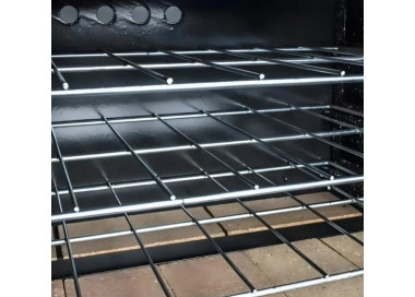 Cámara de cocción enlozada con piso de tejuelas refractarias.