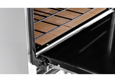 Cámara de cocción enlozada con piso de tejuelas refractarias.