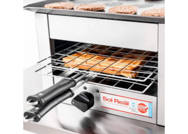 - Gabinete de acero inoxidable esmerilado y plancha bifera.